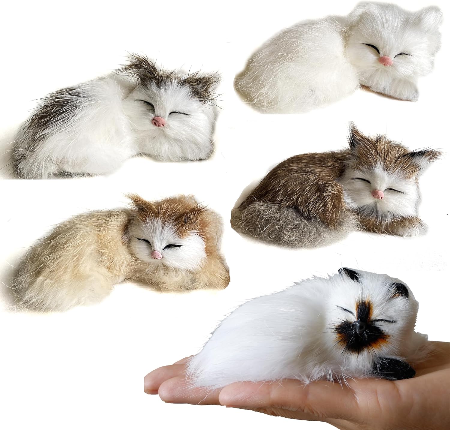 Pack of 5 Realistic Furry Baby Cats Figurines Simulation Kittens Home Office Car Decorative Statue Synthetic Little Pet Stuffed House Animal Kitties Replica Photo Props Collectible Gift
